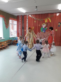 В младшей разновозрастной группе – "Осенние топотушки, в гостях у Петрушки!»