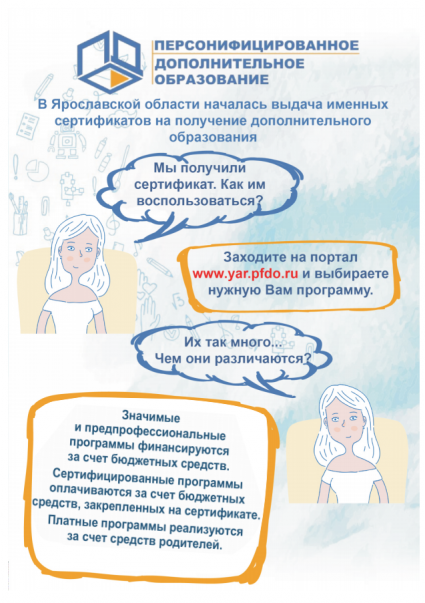 Именно для того, чтобы соблюсти все эти условия, в нашем регионе работают два инструмента:портал персонифицированного дополнительного образования Ярославской области и сертификат дополнительного образования.